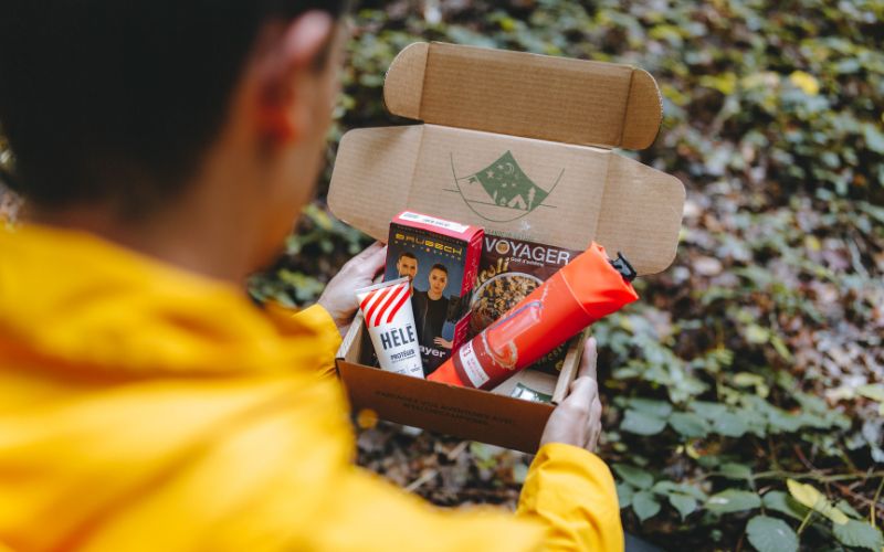 À l'intérieur de votre box par abonnement, recevez 4 à 8 produits et accessoires pour la randonnée pédestre parmi les catégories suivantes :