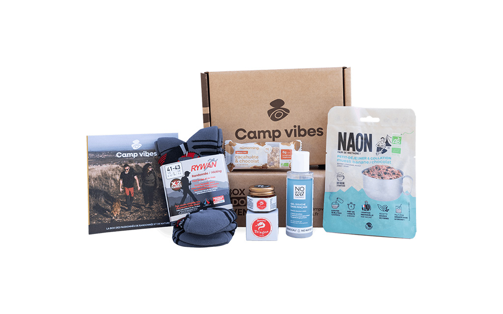 Grâce à la carte cadeau Camp vibes, il ou elle reçoit une box exclusive tous les deux mois, adaptée à sa pratique et pensée pour l’aventure en pleine nature.